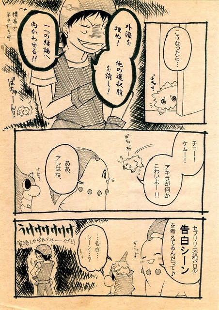しかも漫画(アタリも描いてない落書き漫画)描いたんですが、出てくるのはポケモンばっか(笑)